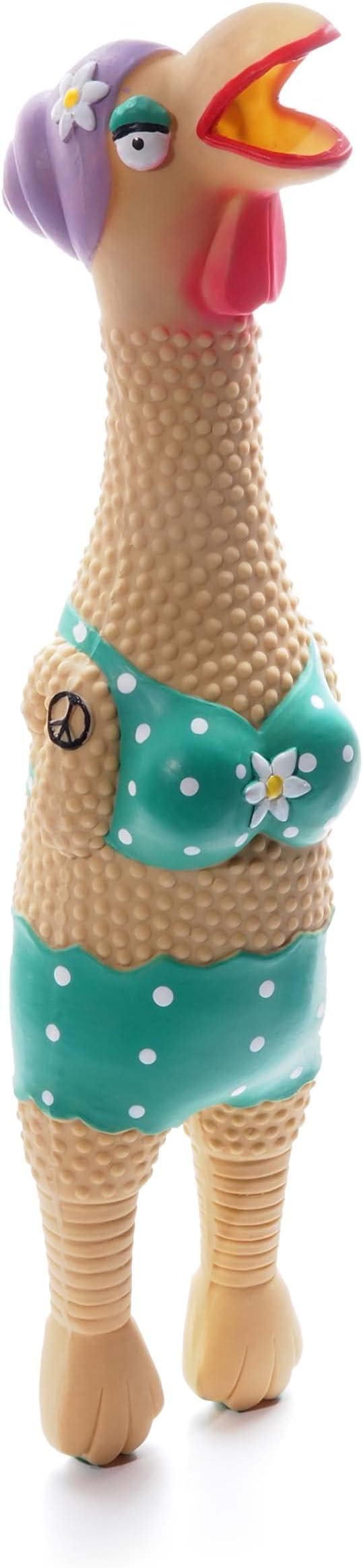 Outward Hound Squawkers Grandma Hippie Chick Latex Rubber Chicken Interactive Dog Toy, Large