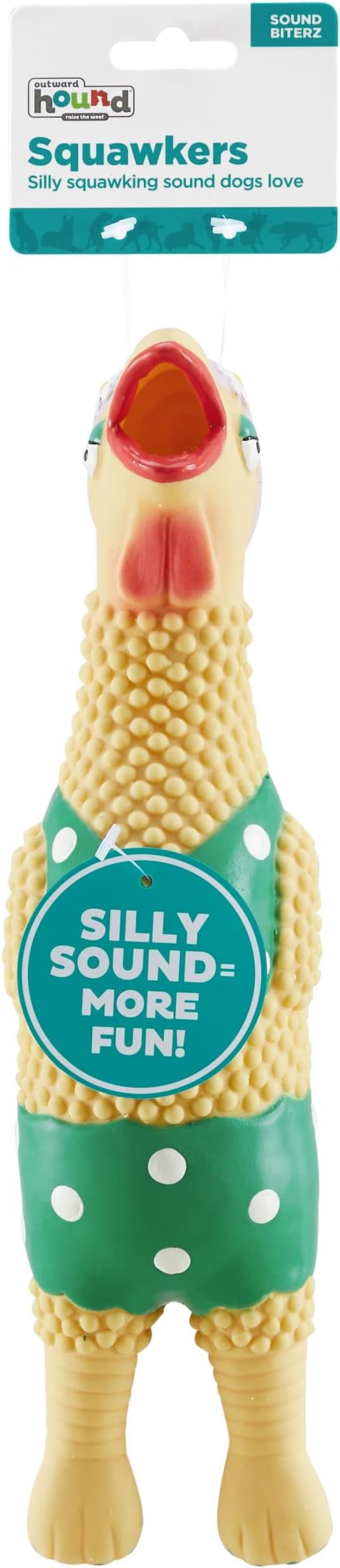• SILLY SQUAWKING DOG TOY: Squawkers latex rubber dog toys are a collection of funny chicken characters that come with an irresistible squawking squeaker your dog will love! Holiday edition Squawkers make a great gift for the furry friend in your life!