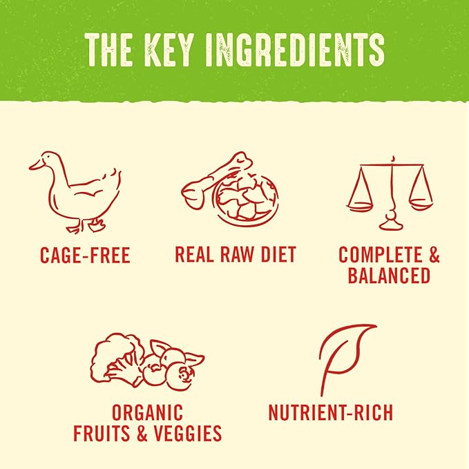 • Irresistible Taste Dogs Love! Made of 95% poultry, organs and bone, such as turkey gizzards, our cage-free Duck recipe has an irresistible taste your dog will sure love