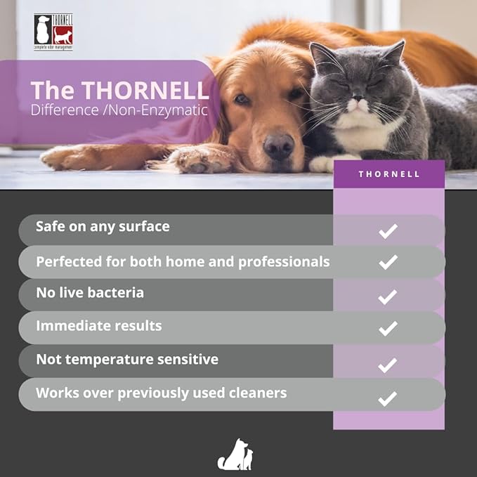 • Use What Your Veterinarian Uses: Thornell is a leading provider of pet smell odor eliminator products to the veterinary industry in North America. Use what the pros use! These powerful pet wipes cats and dogs’ deodorizers can be used as easy clean-up for pet eyes and ears, as a waterless pet bath, or on litter trays, kennels, and cages.