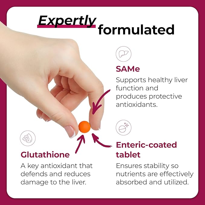 • Advanced liver health formula: S-Adenosylmethionine, otherwise known as SAM-e, supports cognitive function and helps the liver produce the key antioxidant, glutathione, which helps protect and reduce damage to the liver for optimal health and function​