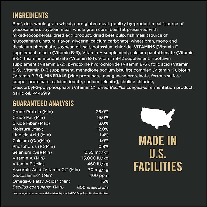 Purina Pro Plan High Protein Dog Food With Probiotics for Dogs, Shredded Blend Beef & Rice Formula - 18 lb. Bag