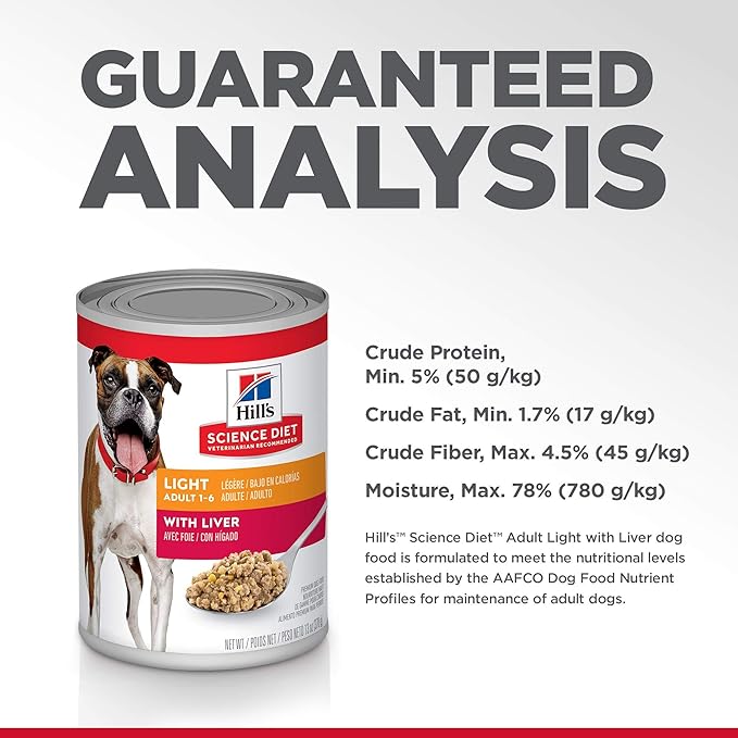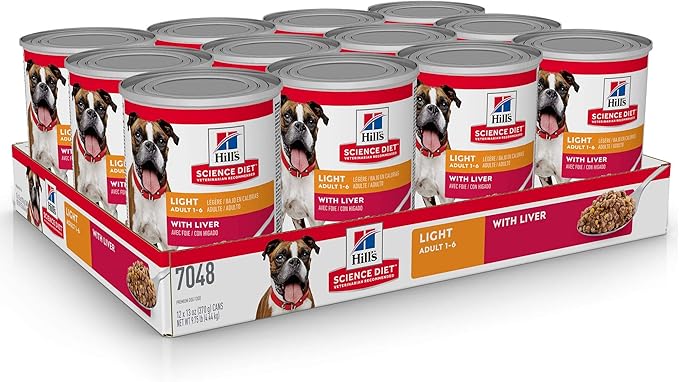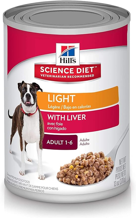 Hill's Science Diet Light, Adult 1-6, Weight Management Support, Wet Dog Food, Liver Loaf, 13 oz Can, Case of 12