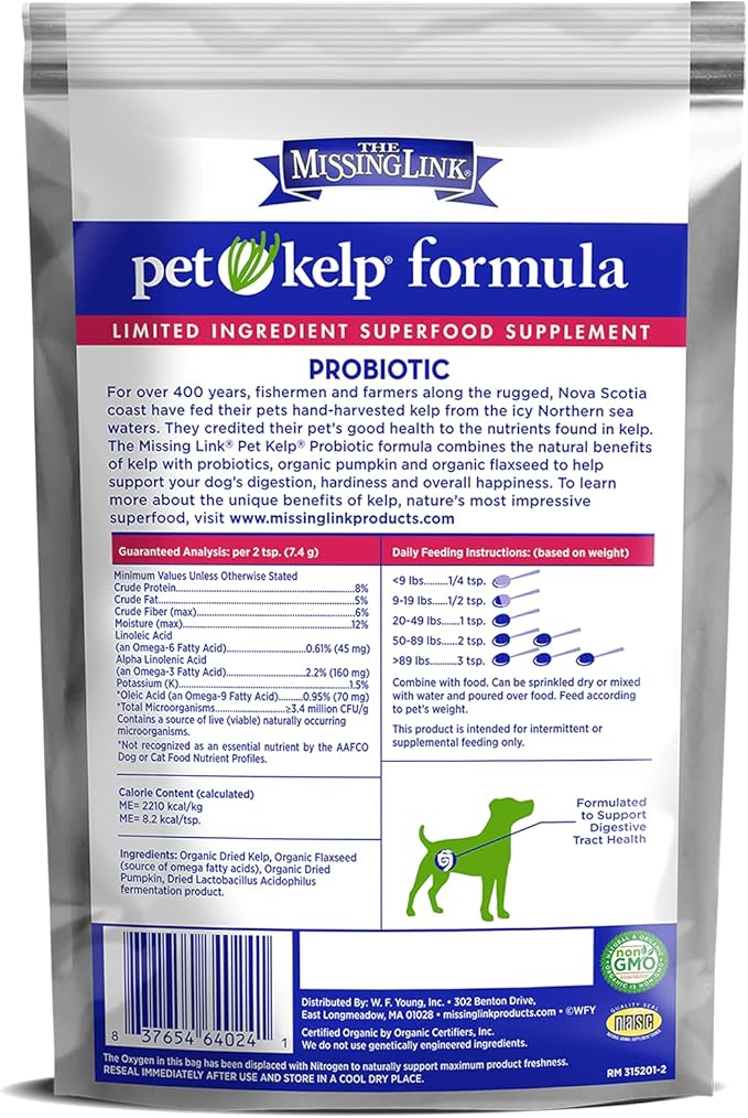 The Missing Link Pet Kelp Canine Probiotic 8oz Superfood Powdered Supplement, Organic & Limited Ingredient Formula for Digestive Health of Dogs