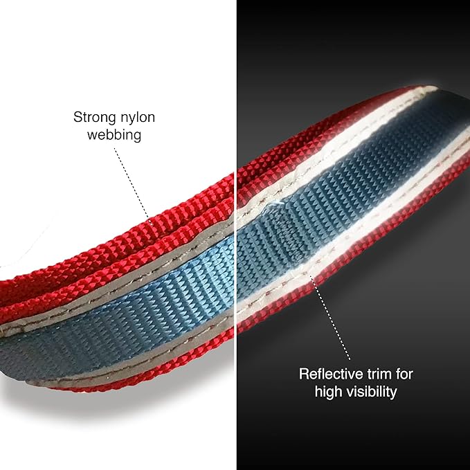 • Adjustable & reflective dog lead: leash is adjustable from 48-72” (measurement includes handle) pet leash is reflective for visibility in low light & nighttime. Made of strong nylon webbing