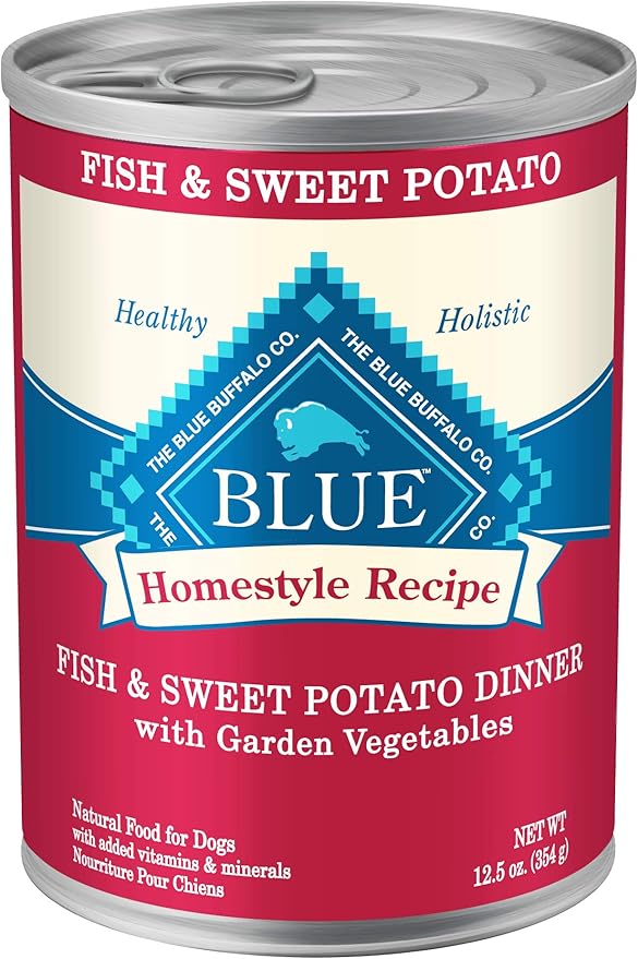Blue Buffalo Homestyle Recipe Natural Adult Wet Dog Food, Fish & Sweet Potato 12.5 oz cans (Pack of 12)