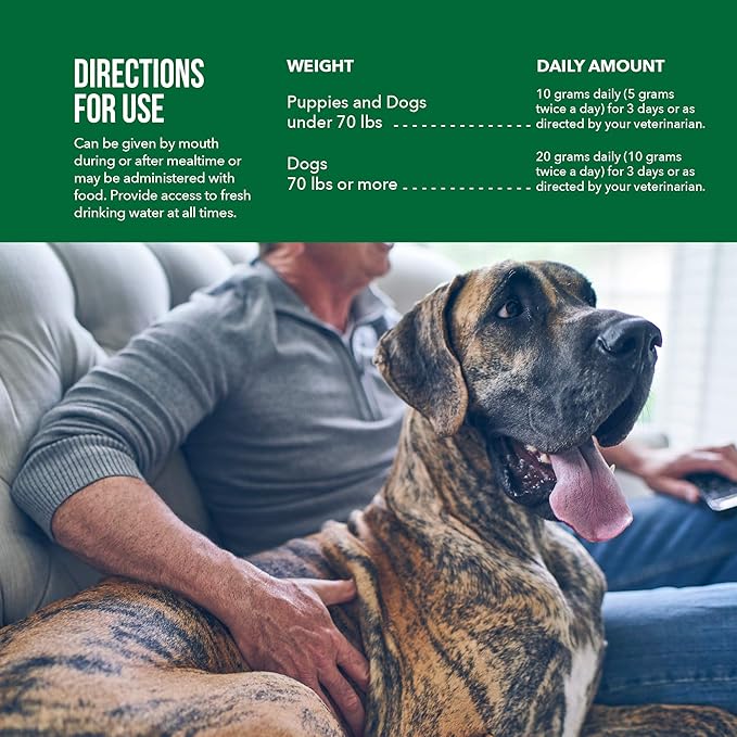 • Use during or just before stressful situations such as traveling, kenneling or training to help keep your dog's GI system balanced.