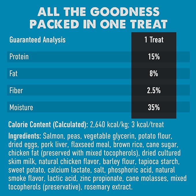 • HIGHLY PALATABLE & MOTIVATING These high protein, chewy training treats are made with real salmon that tastes and smells amazing, keeping your dog’s attention for successful training.