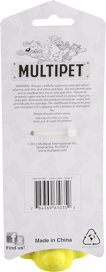 Multipet Original Loofa Dog Latex Ruff 6" Dog Toy, Assorted Colors for small breeds.