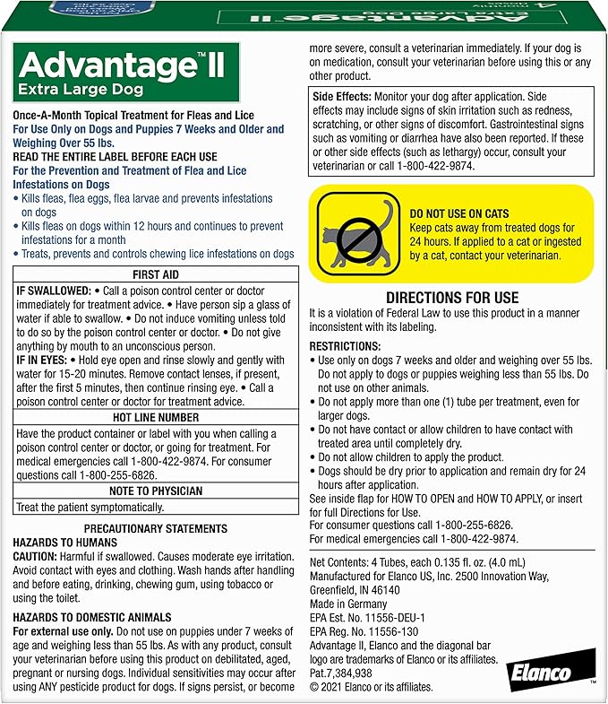 Advantage II XL Dog Vet-Recommended Flea Treatment & Prevention | Dogs Over 55 lbs. | 4-Month Supply