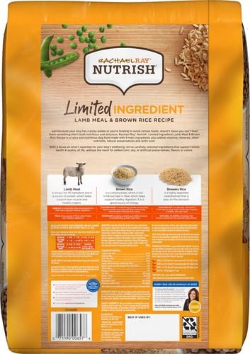 • Contains one (1) 14 pound bag of Rachael Ray Nutrish Limited Ingredient Lamb Meal & Brown Rice Recipe dry dog food (packaging design may vary)