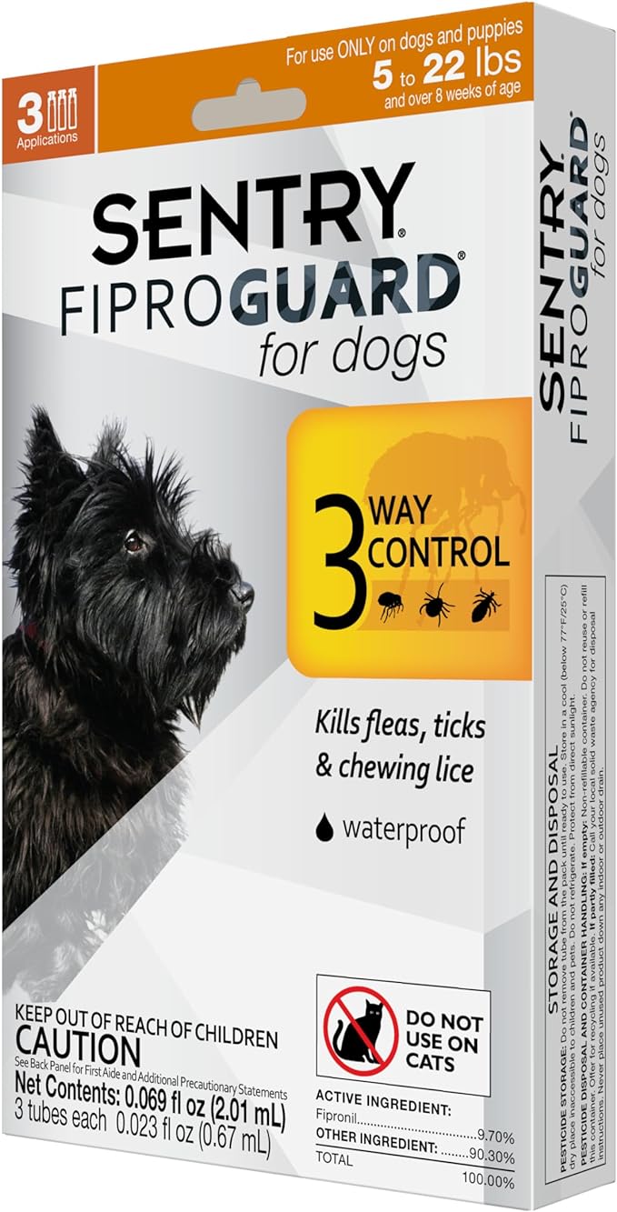 SENTRY PET CARE SENTRY Fiproguard for Dogs, Flea and Tick Prevention for Dogs (5-22 Pounds), Includes 3 Month Supply of Topical Flea Treatments