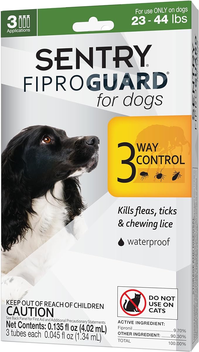 SENTRY Fiproguard for Dogs, Flea and Tick Prevention for Dogs (23-44 Pounds), Includes 3 Month Supply of Topical Flea Treatments