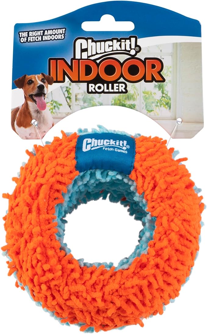 Chuckit Indoor Fetch Roller Dog Toy (7.5 Inch), Orange and Blue