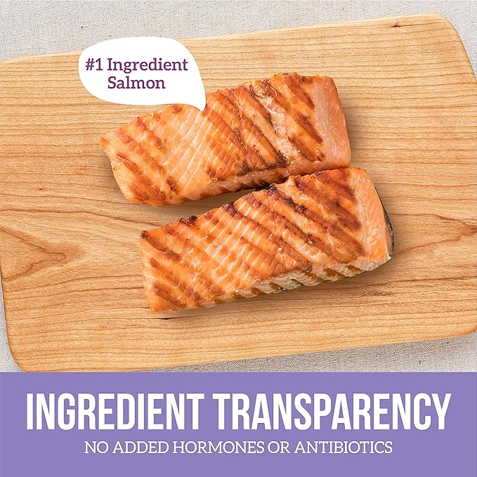 • DOG FOOD MADE HEALTHY: It is a portion of perfect dog food for your pup of all ages while promoting healthy skin and a shiny coat, with 95% super premium salmon. Great tasting meaty foods to show your dog you care. Our recipe is made from high-quality ingredients and contains no rendered animal fats, colors, dyes, added sugar, Ethoxyquin, or BHT.