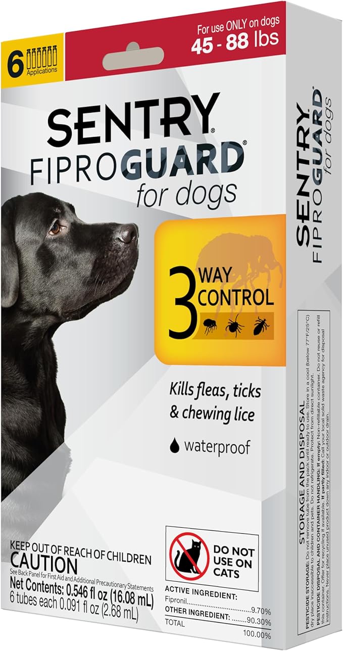 SENTRY Fiproguard for Dogs, Flea and Tick Prevention for Dogs (45-88 Pounds), Includes 6 Month Supply of Topical Flea Treatments