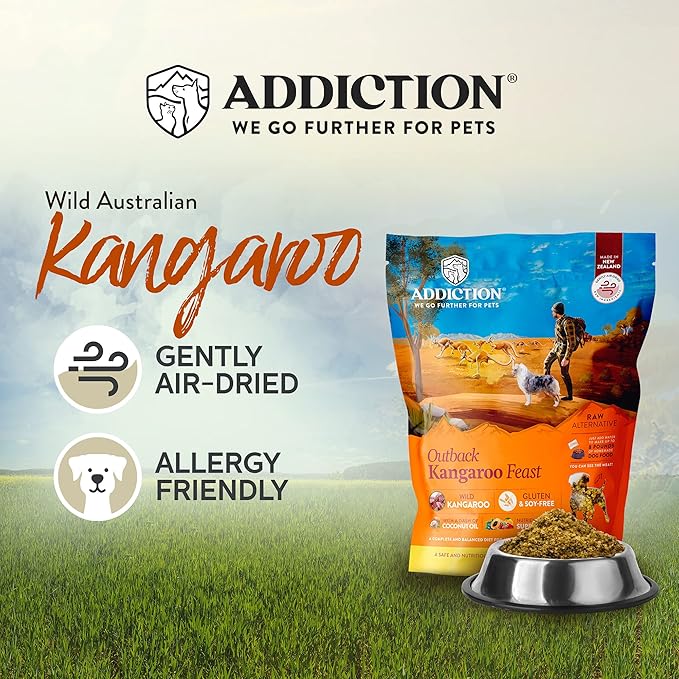 Addiction Outback Kangaroo Feast Raw Alternative Dog Food - Gently Air-Dried Complete Meal or Dog Food Topper for Digestive and Skin and Coat Health, 2 lb