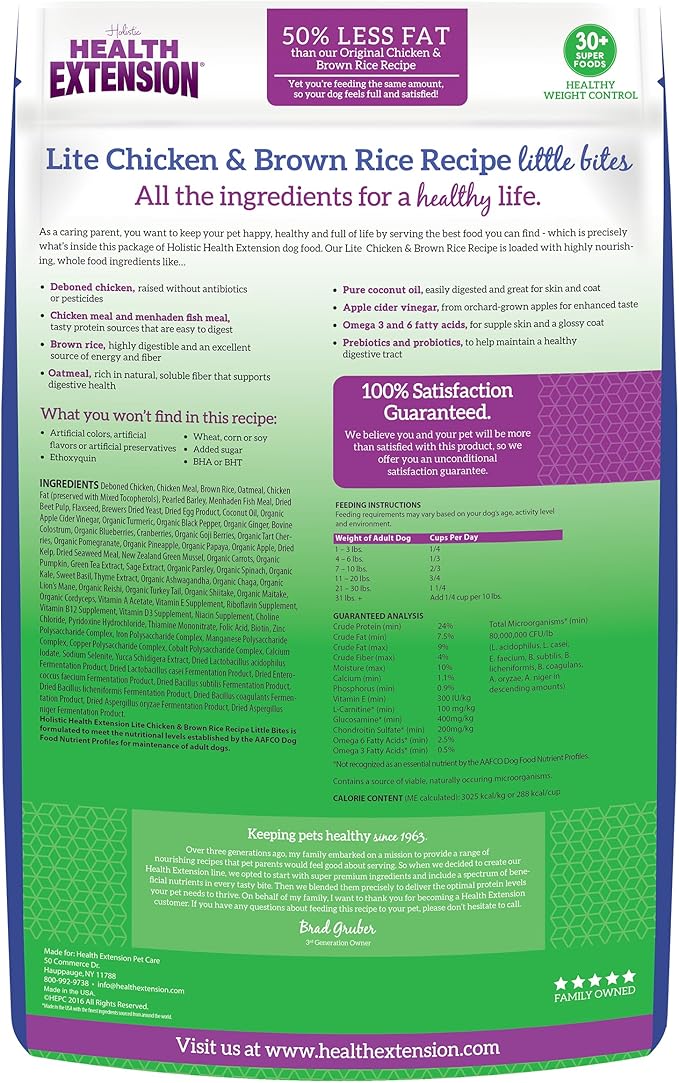Health Extension Little bites Weight Control Dry Dog Food, Grain-free, Natural Food for Overweight Adult Dogs with added Vitamins & Mineral, Include Lite Chicken & Brown Rice Recipe (4 lbs)
