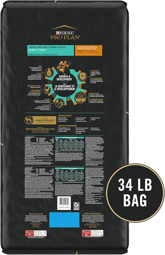 Purina Pro Plan High Protein Puppy Food Shredded Blend Chicken & Rice Formula - 34 lb. Bag
