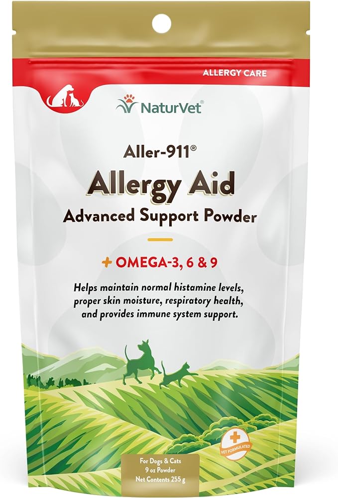 NaturVet Aller-911 Advanced Allergy Aid Formula Powder Plus Antioxidants for Dogs and Cats, 9 oz Powder, Made in The USA