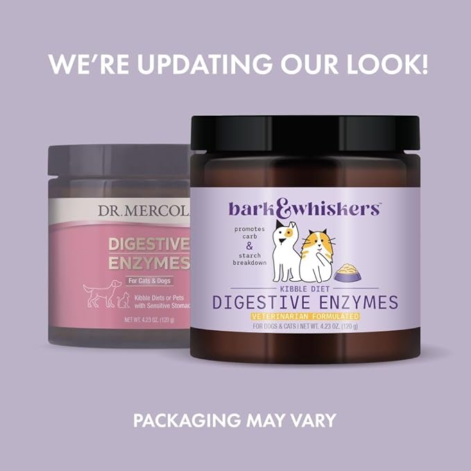 Bark & Whiskers Digestive Enzymes Kibble Diet, for Dogs & Cats, 4.23 oz. (120 g), 150 Scoops, Promotes Carb & Starch Breakdown, Veterinarian Formulated, Non-GMO, Dr. Mercola
