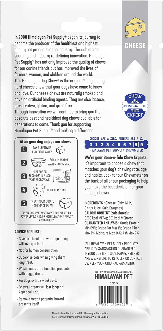 • CHICKEN FLAVOR: Large Himalayan Dog Chews are ideal for dogs 55 pounds and larger. Chews sized right for your dog's weight, temperament and activity level. Not for dogs younger than 12 weeks.