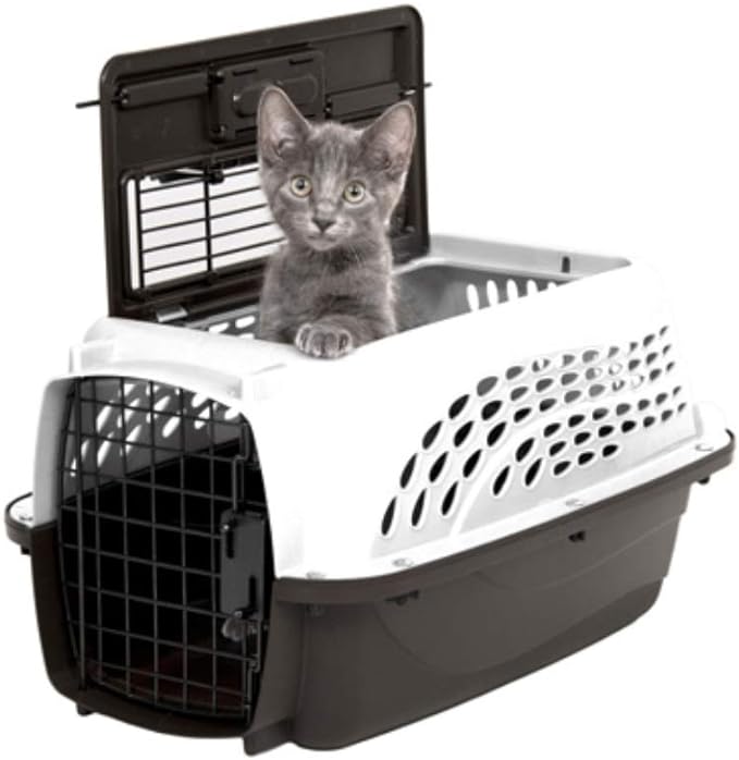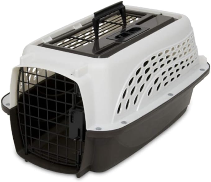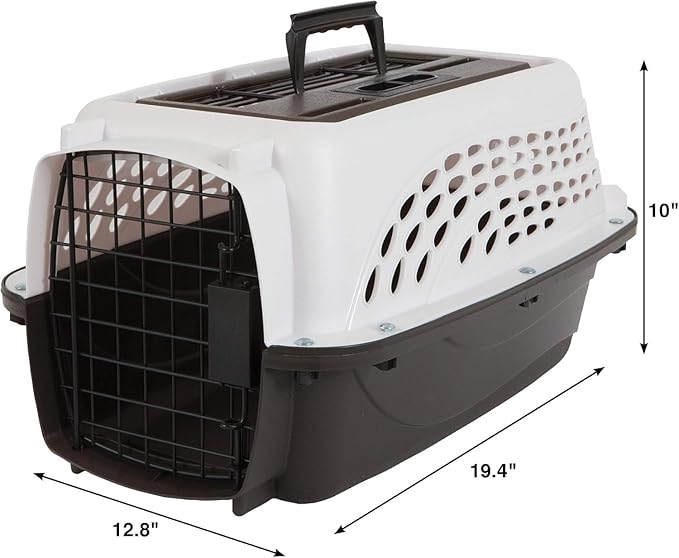 Petmate Two-Door Small Dog & Cat Carrier, Top or Front Loading, Made with Recycled Materials, 19 inches, For Pets up to 10 Pounds, Made in USA,White