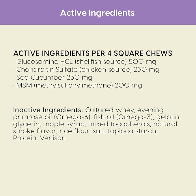 • Included components: includes (1) 9 oz. bag of ark naturals sea mobility joint rescue chews, venison.