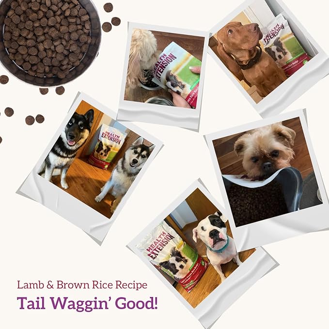 Health Extension Dry Dog Food, Natural Food for All Puppies & Dogs with added Vitamins & Mineral, Lamb & Brown Rice Recipe (30 lb / 13.6 Kg)