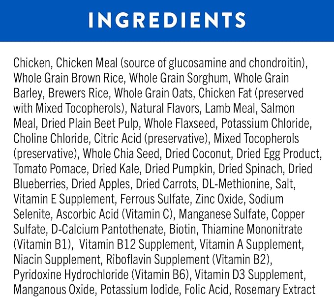 • Features trio of protein from chicken, lamb, and salmon—chicken is the #1 ingredient—specially formulated for adult dogs