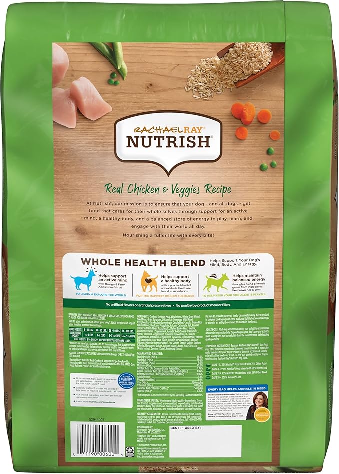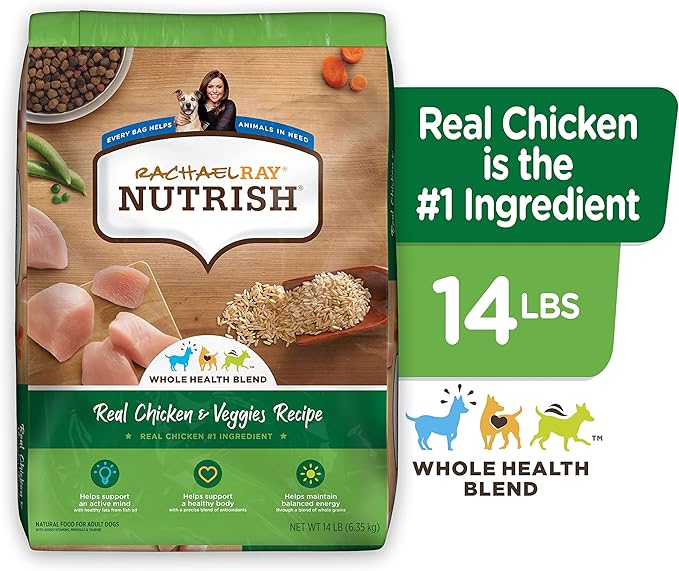 • Contains one (1) 14-pound bag of Rachael Ray Nutrish Real Chicken & Veggies Recipe