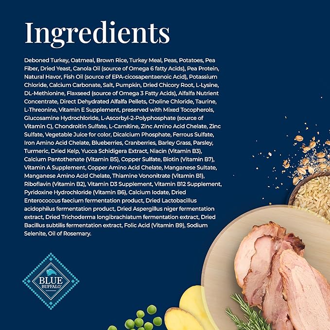 • REAL TURKEY FIRST: This Blue Buffalo dry dog food is made with real, high-quality turkey as the #1 ingredient