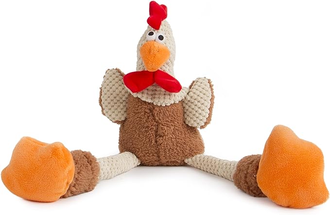 goDog Checkers Skinny Rooster Squeaky Plush Dog Toy, Chew Guard Technology - Brown, Large