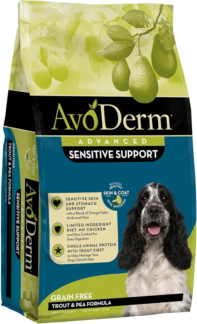 AvoDerm Advanced Sensitive Support Grain-Free Trout & Pea Formula Dry Dog Food, Sensitive Stomach, 4lb