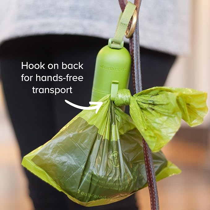 Earth Rated Leash Dispenser & 15 Dog Poop Bag Bundle Pack - Ultra-Thick Doggie Waste Bags with Holder | Lavender-Scented With Leak-Proof Security