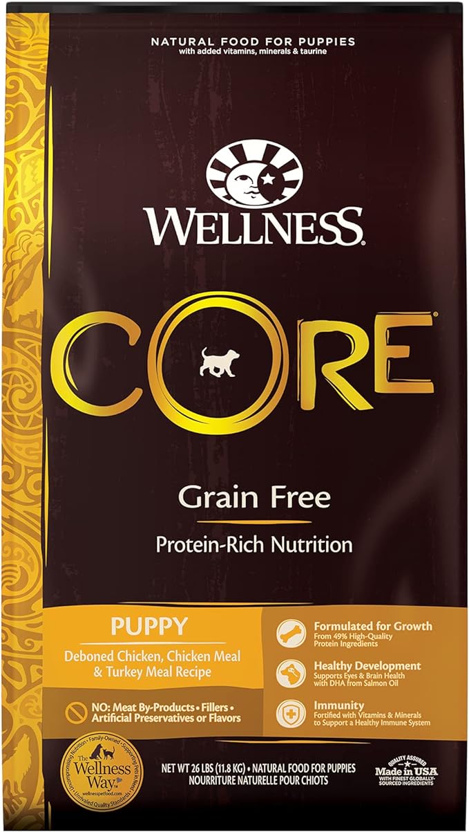 Wellness CORE Natural Dry Grain Free Puppy Food, Chicken & Turkey, 26-Pound Bag