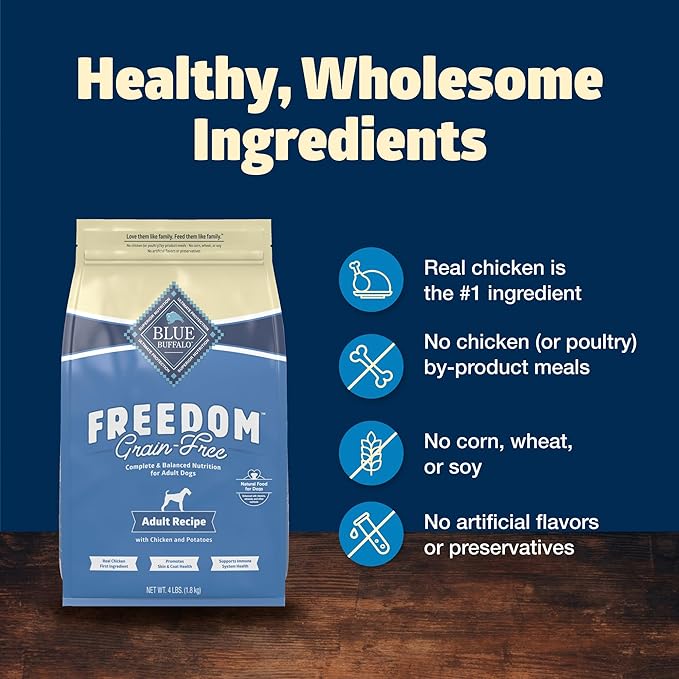 Blue Buffalo Freedom Grain-Free Dry Dog Food, Complete & Balanced Nutrition for Adult Dogs, Made in the USA With Natural Ingredients, Chicken & Potatoes, 4-lb. Bag