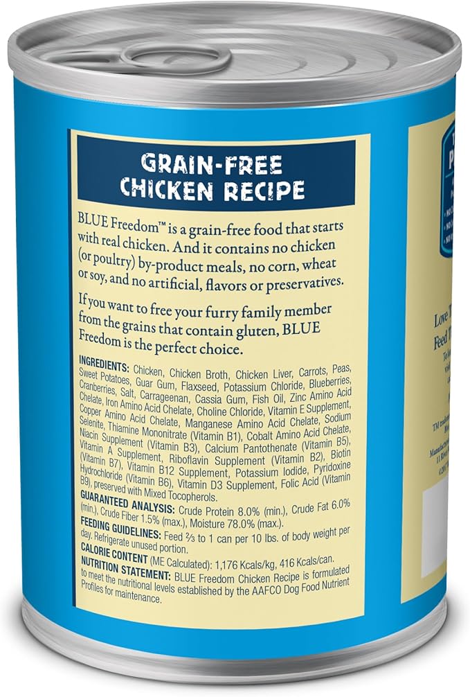 • Contains: Twelve (12) 12.5-oz. cans of BLUE Freedom Grain-Free Wet Dog Food, Chicken Recipe