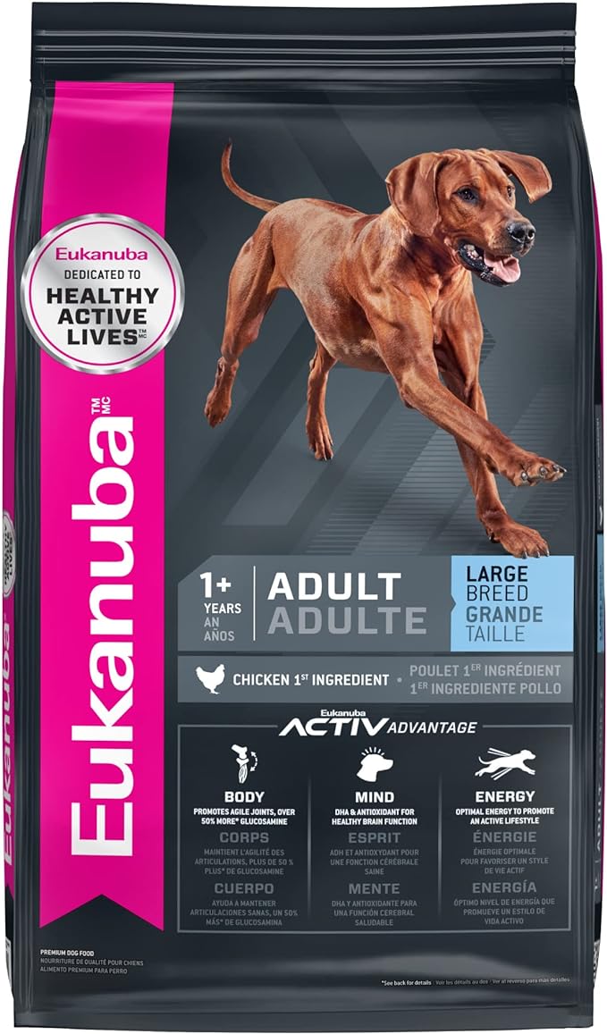 • FOR LARGE BREED DOGS: Eukanuba Large Breed Dog Food Dry Adult Formula delivers complete and balanced nutrition for large breed dogs over 15 months old and weighing over 55 lbs