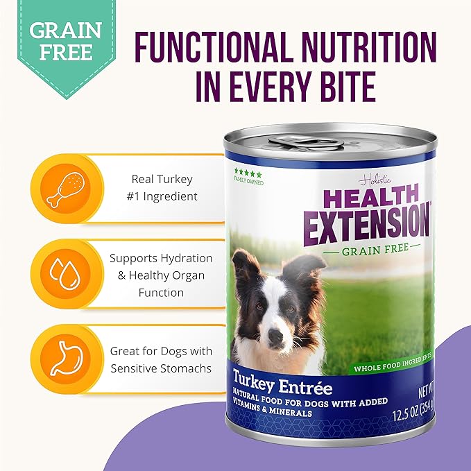 Health Extension Wet Dog Food, Gluten and Grain-Free, Healthy Natural Food Canned for Puppies, Turkey Recipe (12.5 Oz / 374 g) (Pack of 12)