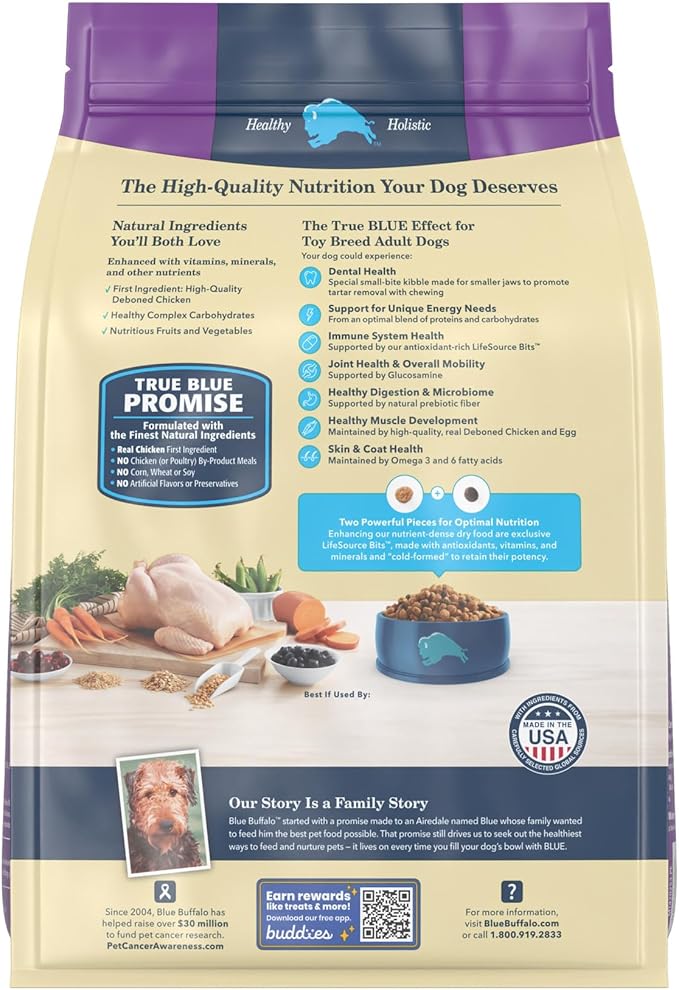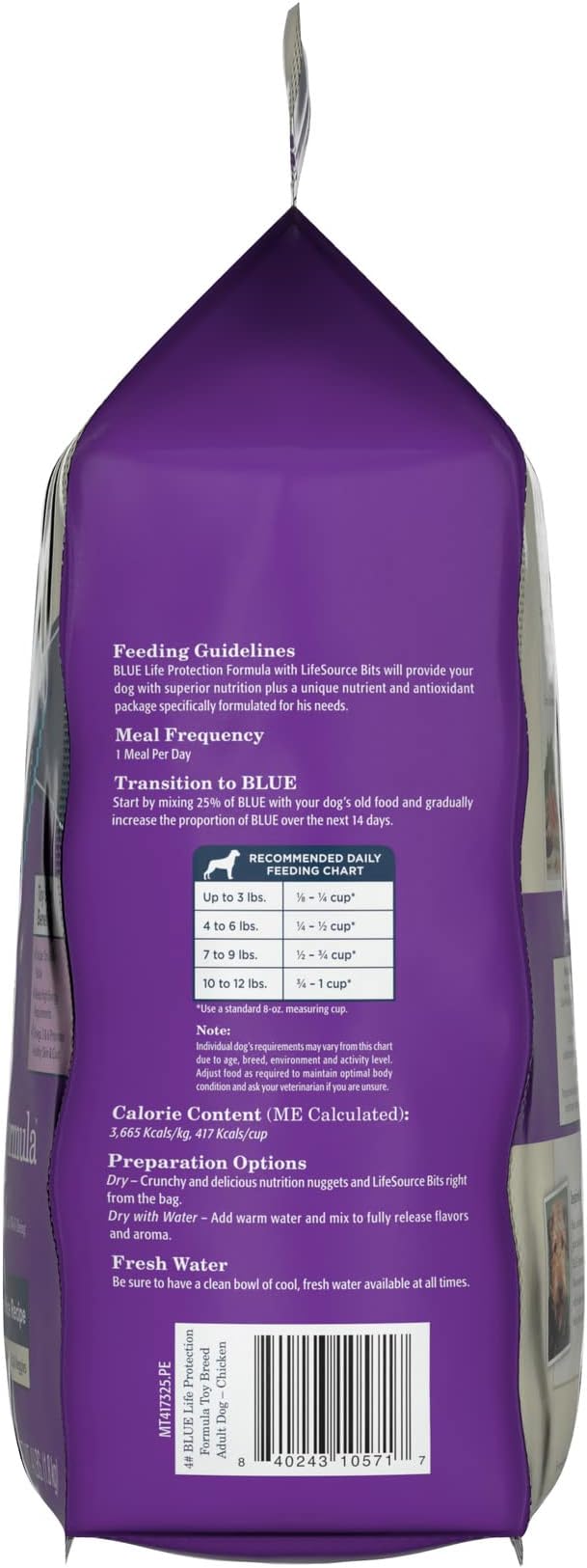 • TOY BREED DOG FOOD: BLUE Life Protection Formula Toy Breed Dog Food contains an optimal blend of high-quality proteins and carbohydrates to meet the unique energy needs of smaller dogs with a kibble size ideal for smaller jaws