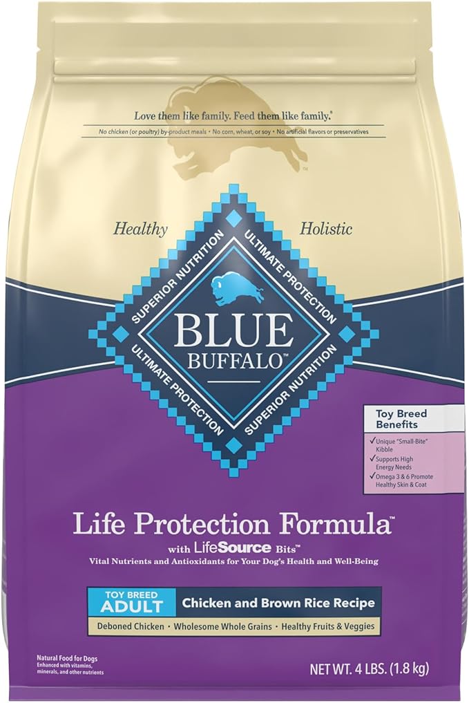 • PACKAGING MAY VARY: Contains one (1) 4 lb. Bag of BLUE Life Protection Formula Toy Breed Adult Dry Dog Food, Chicken and Brown Rice