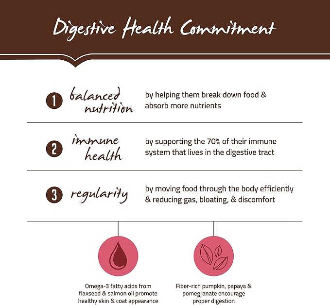 • DIGESTIVE HEALTH: Optimal levels of protein plus prebiotics and probiotics, live yogurt cultures, digestive enzymes, and natural fiber in this dog food enhance digestion for your dog throughout their life