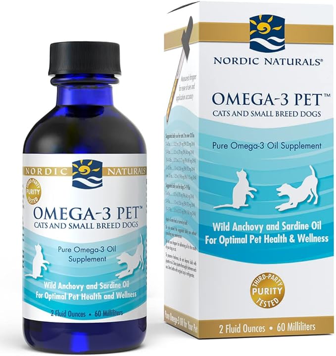 • WHY OMEGA-3 PET - This Nordic Naturals pet product is made with the same exceptional quality oil as our human products, but has been specially formulated for your cat or small breed dog. Omega-3 Pet features omega-3 fish oil in liquid form.