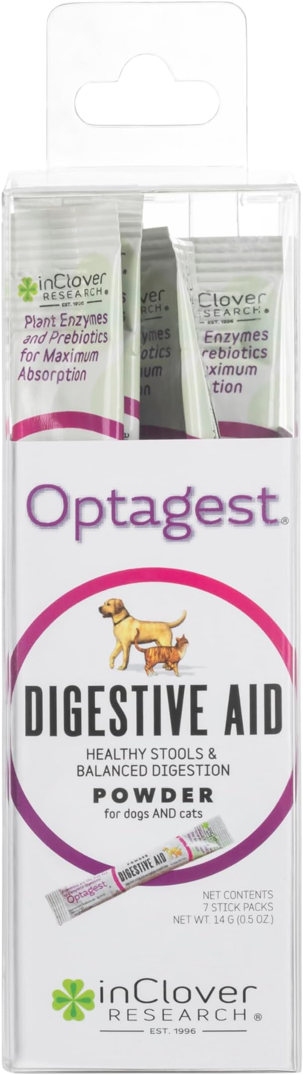 In Clover Optagest Organic Prebiotic and Natural Enzyme Powder for Healthy Stools and Less Gas, Without Foreign Probiotics. Immune Support and Digestive Enzymes for Dogs and Cats, 7sticks