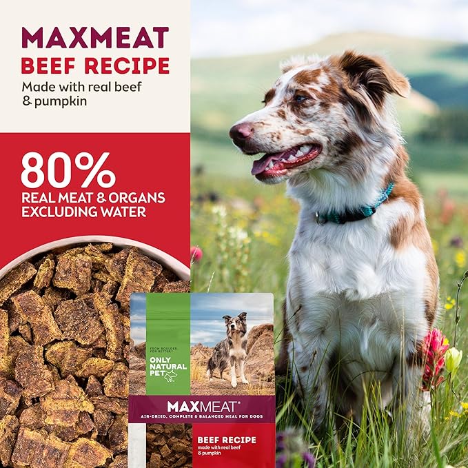 Only Natural Pet MaxMeat Holistic Air Dried Dry Dog Food - All Natural, High Protein, Grain Free and Limited Ingredient - Made with Real Meat - Beef with Pumpkin & Parsley 5.5 lb