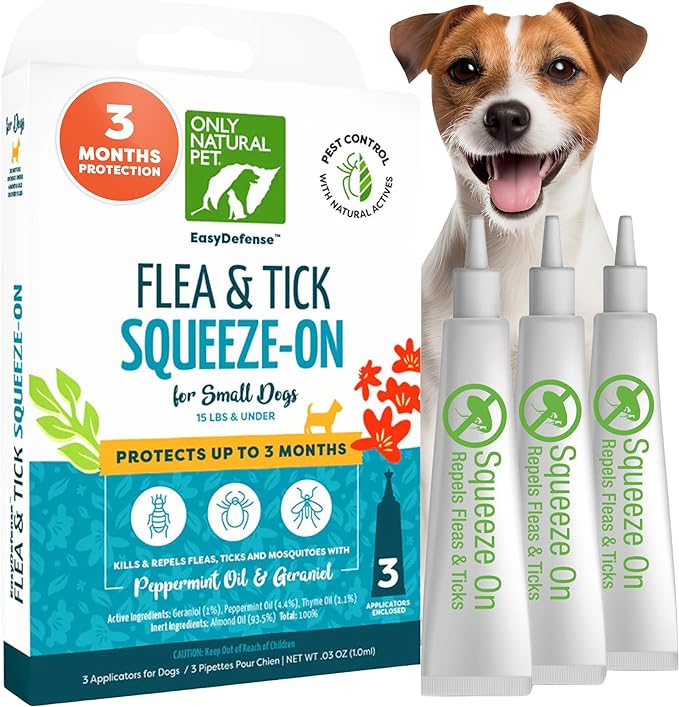 Only Natural Pet Flea and Tick Prevention for Small Breed Dogs (up to 15 lbs) - EasyDefense Flea Remedy - Natural Flea Control Herbal Squeeze-On Drops - Three Month Supply (Single)