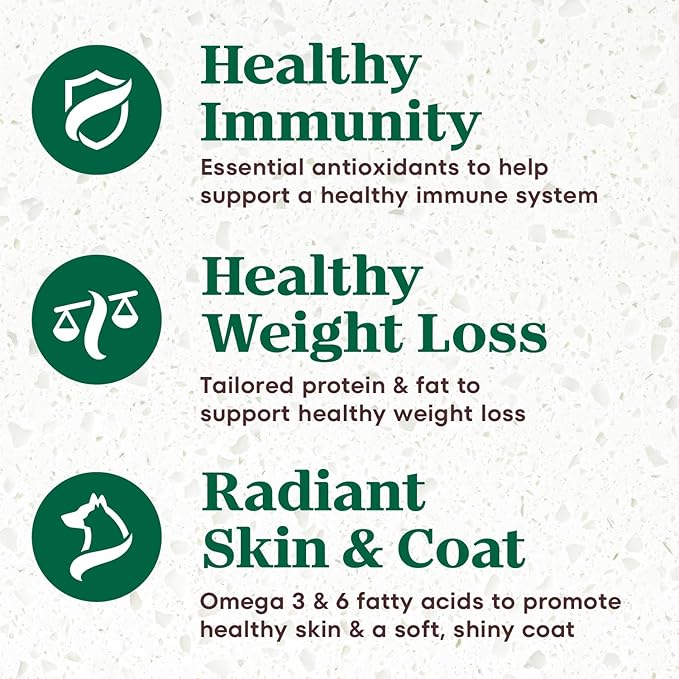 • Features trio of protein from chicken, lamb, and salmon—chicken is the ingredient—specially formulated for overweight adult dogs to help with healthy weight management