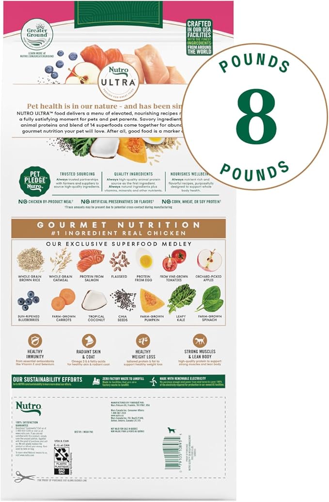 • NUTRO ULTRA Dry Dog Food is made with high-quality protein and our blend of 15 vibrant superfoods, like coconut, chia, kale, blueberries, and other quality ingredients