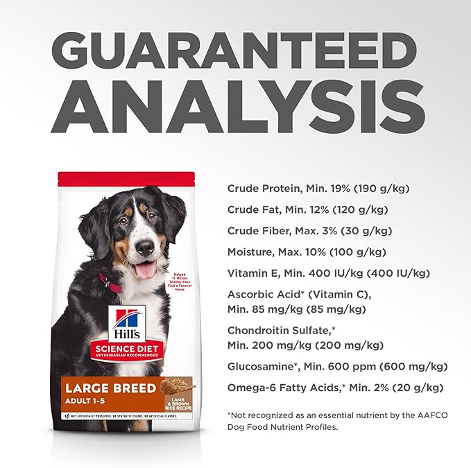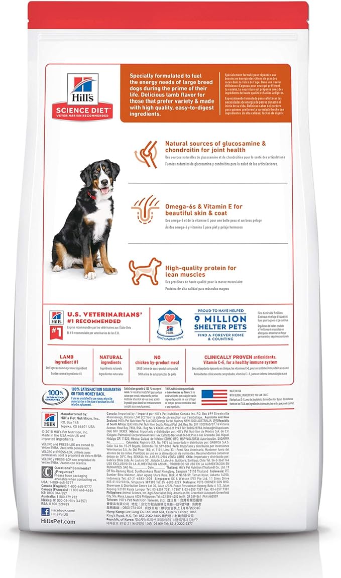 Hill's Science Diet Large Breed, Adult 1-5, Large Breed Premium Nutrition, Dry Dog Food, Lamb & Brown Rice, 33 lb Bag
